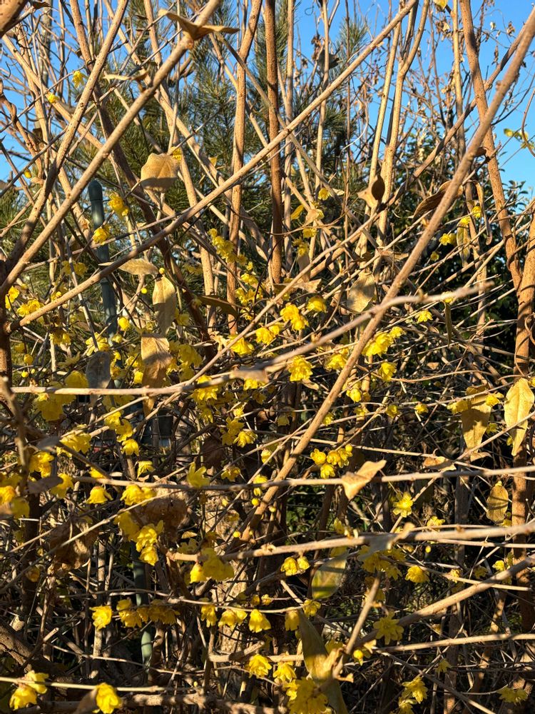 蝋梅は、ゴミ出しの時に通る道にあるんです,陽当たりも良いので満開です🌼🌼