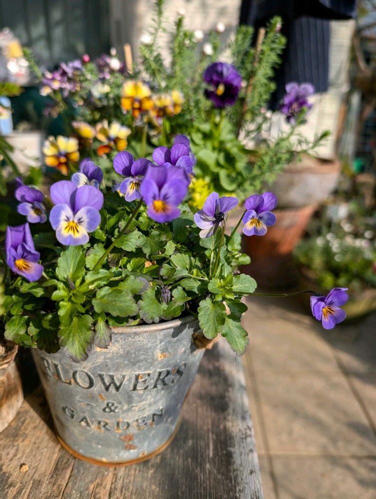 今日のお花ストックは寄せ植えの中です