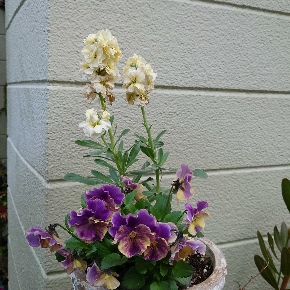 あれから(11月28日投稿)ずーっと咲いてる寄せ植えのストック(先ほど外に出て撮って来ました〜寒っ🥶)