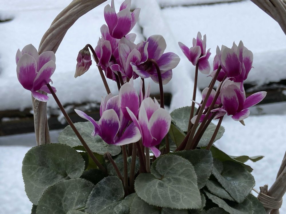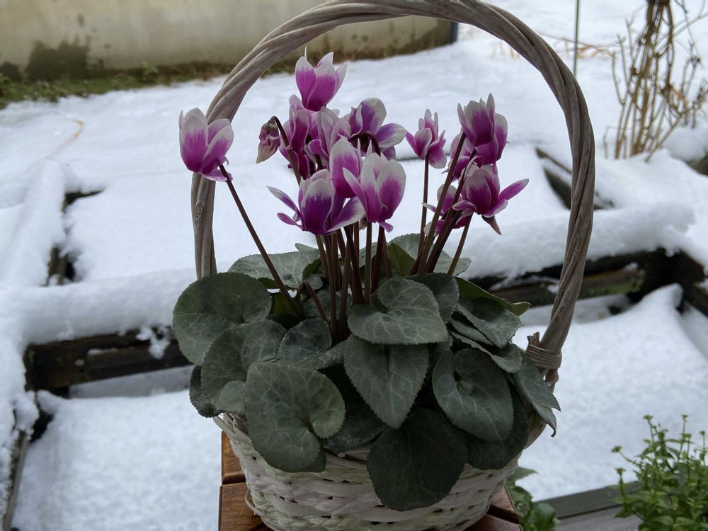 曇り空の為暗く写ってしまいましたが、本来は濃いシルバーリーフがとても綺麗なシクラメンちゃんデス💜