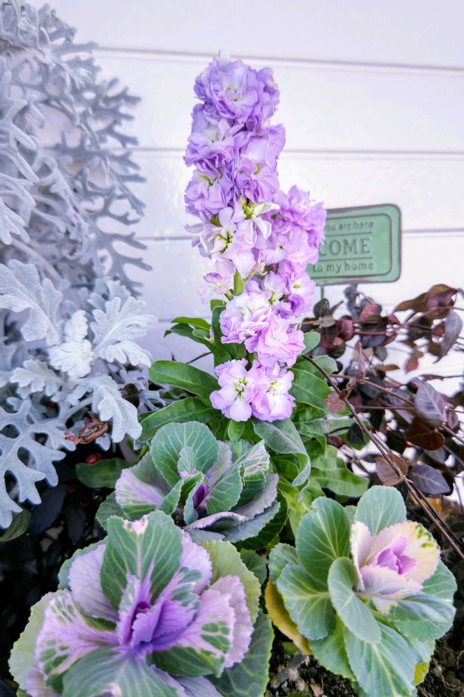 寄せ植えの💜🤍