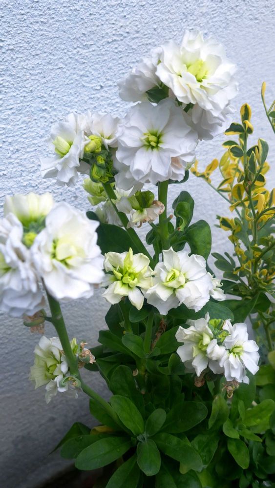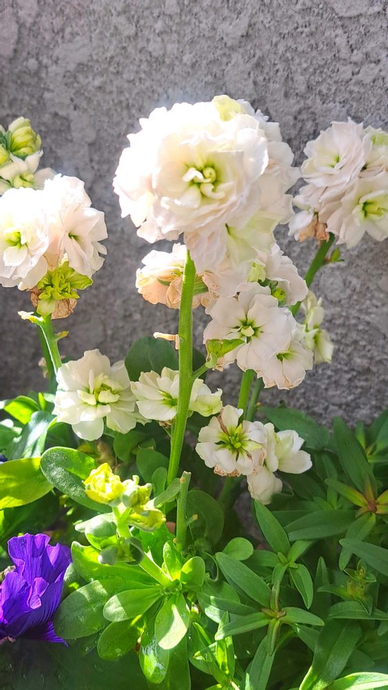 玄関先の「寄せ植え」3鉢の、ストックです(’-’*)♪💖