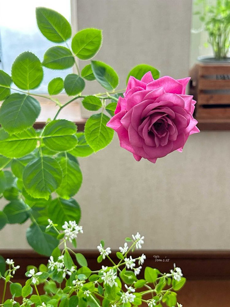 室内で越冬させていますがいつもこうして咲いてくれるの🌹