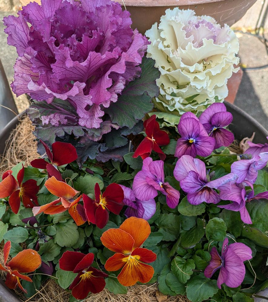ミニ葉牡丹とビオラの寄せ植え❣️