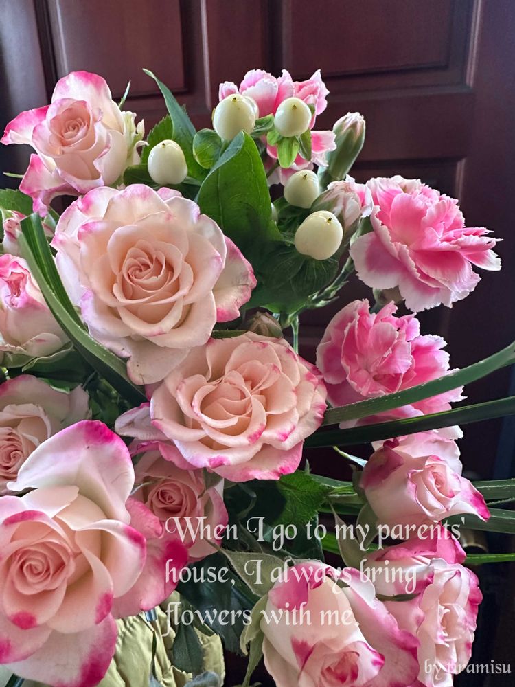 今日はピンク色のお花を途中の花屋さんで購入し持って行きました💕