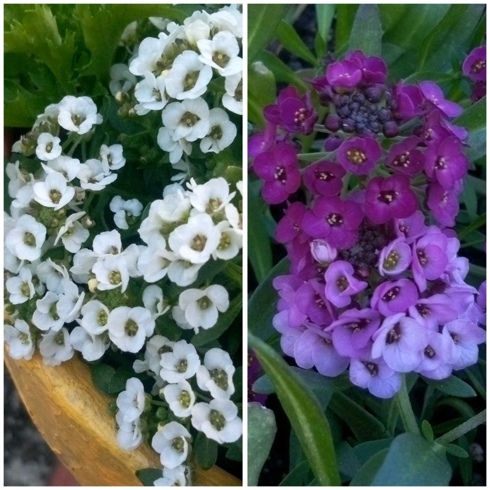 アリッサム、庭でこの2色が可愛いく咲いてくれています🤍💜
