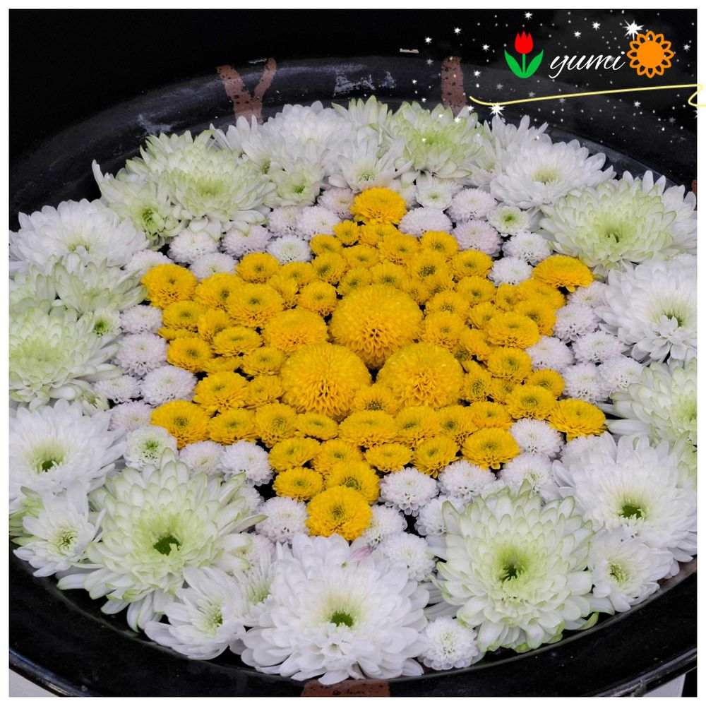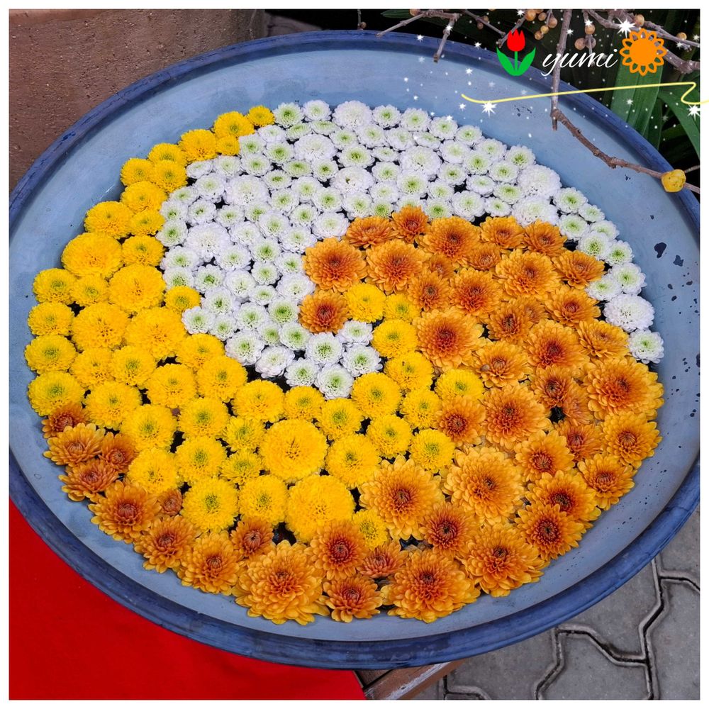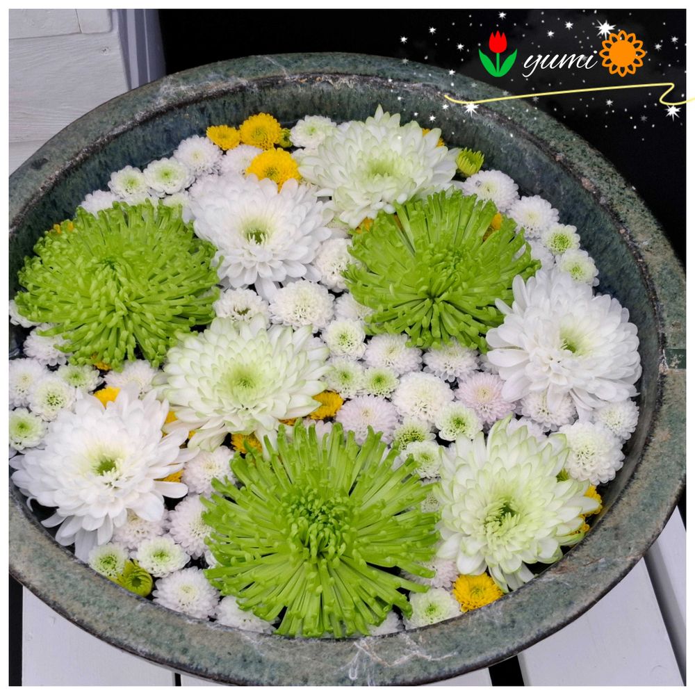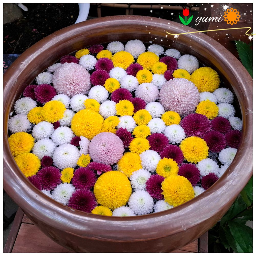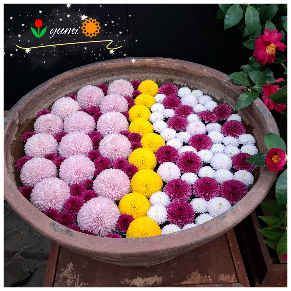 キクの可愛い花手水😍