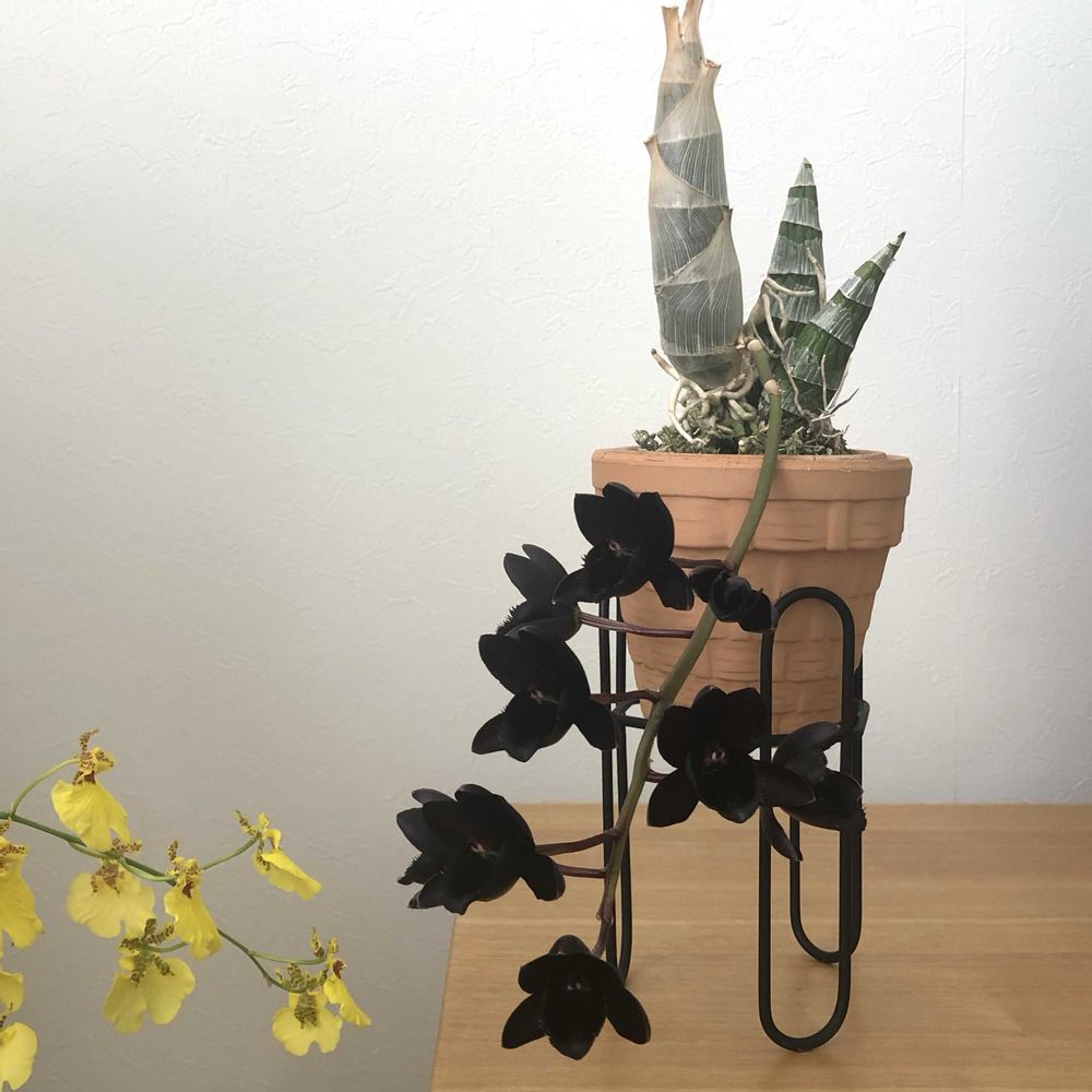 切花にしたオンシ💛下に移動したら良い感じに写り込んでました😅