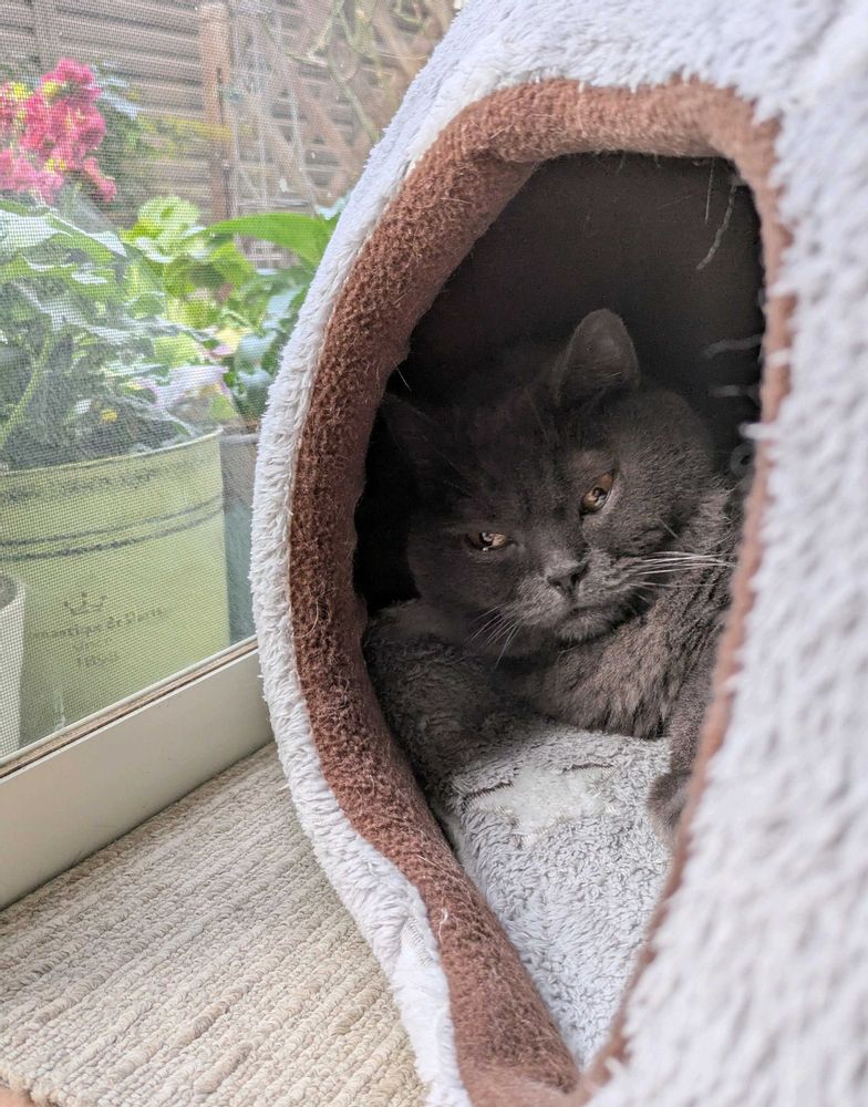 猫🐈⬛さんはぬくぬくハウスの中からメジロさんが来るのを待ってます🍊🦜🦜