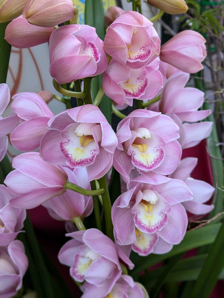①シンビジウム ラン科 シュンラン属 商店街の店先で。豪華ですね。