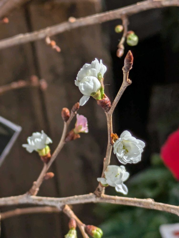 ②寒桜 バラ科の落葉広葉樹 カンヒザクラとサトザクラ(あるいはハヤザキオオシマ)の雑種とされる。花屋の店先で