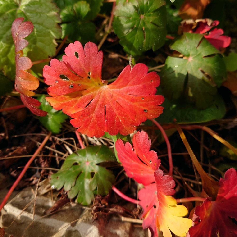 フウロソウの葉っぱが綺麗に真っ赤に紅葉🍁