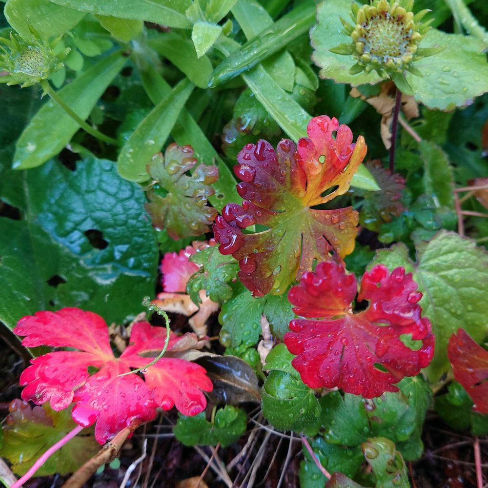 フウロソウの葉っぱ、真っ赤❤️で綺麗です。