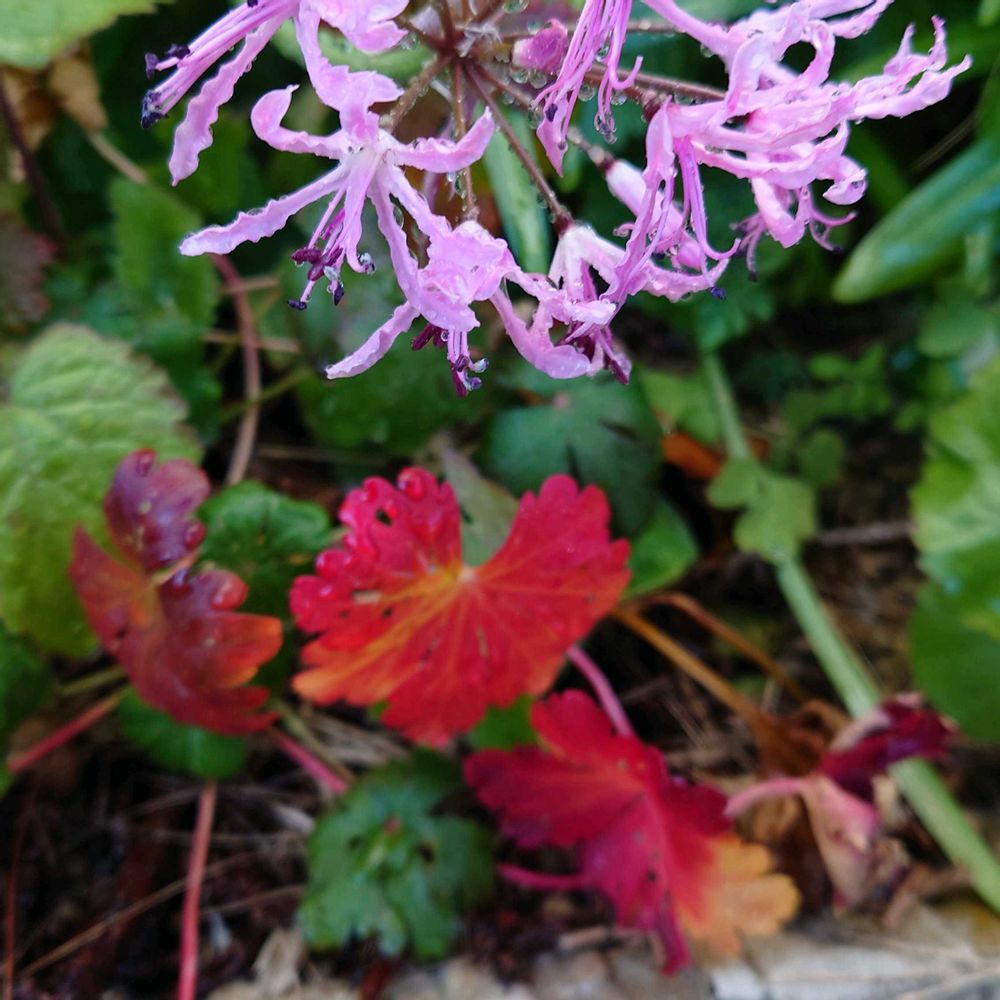 フウロソウが赤く色づいてて、側のネリネよりも可愛くて思わずシャッター切りました〜😁✨👍
