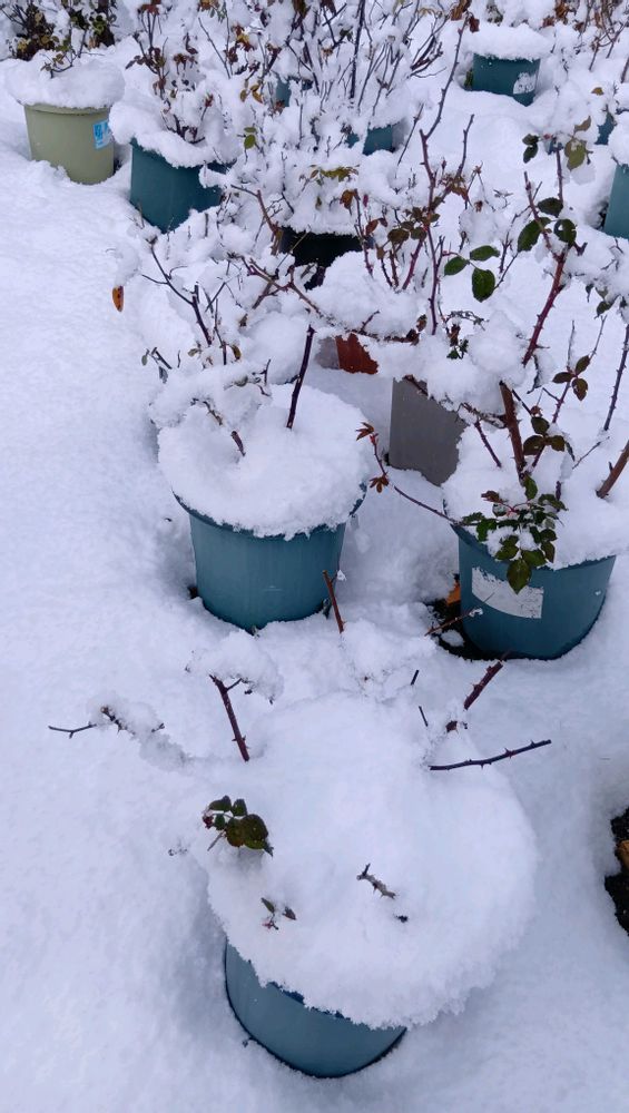 凍るかもと心配でしょうがむしろ雪をかぶったほうが凍りません😙寒風に曝されたほうがやられます。北国では芽が凍害を受けないようわざと枝に水を吹きかけて薄く凍りつかせて守る技もありますよ👍
