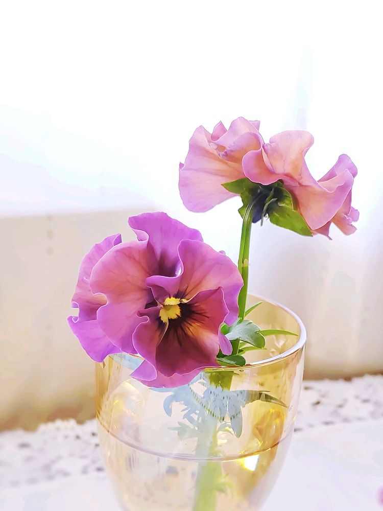 手持ちのグラスやコップで花に合う物が見つかると何だか嬉しいです。(*^▽^*)