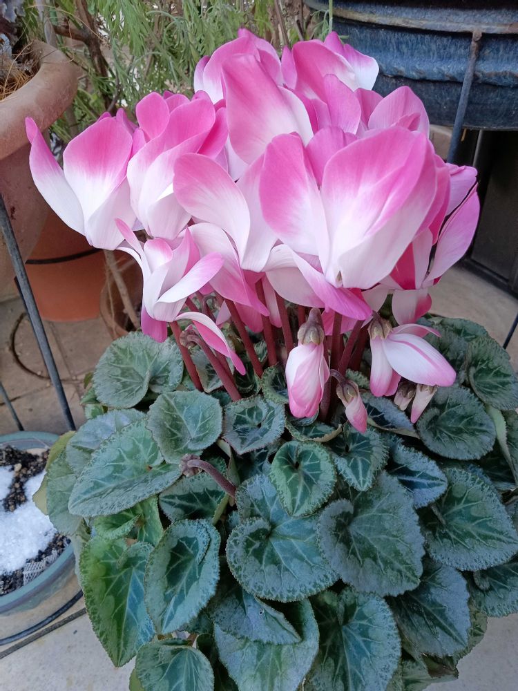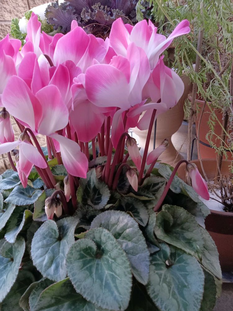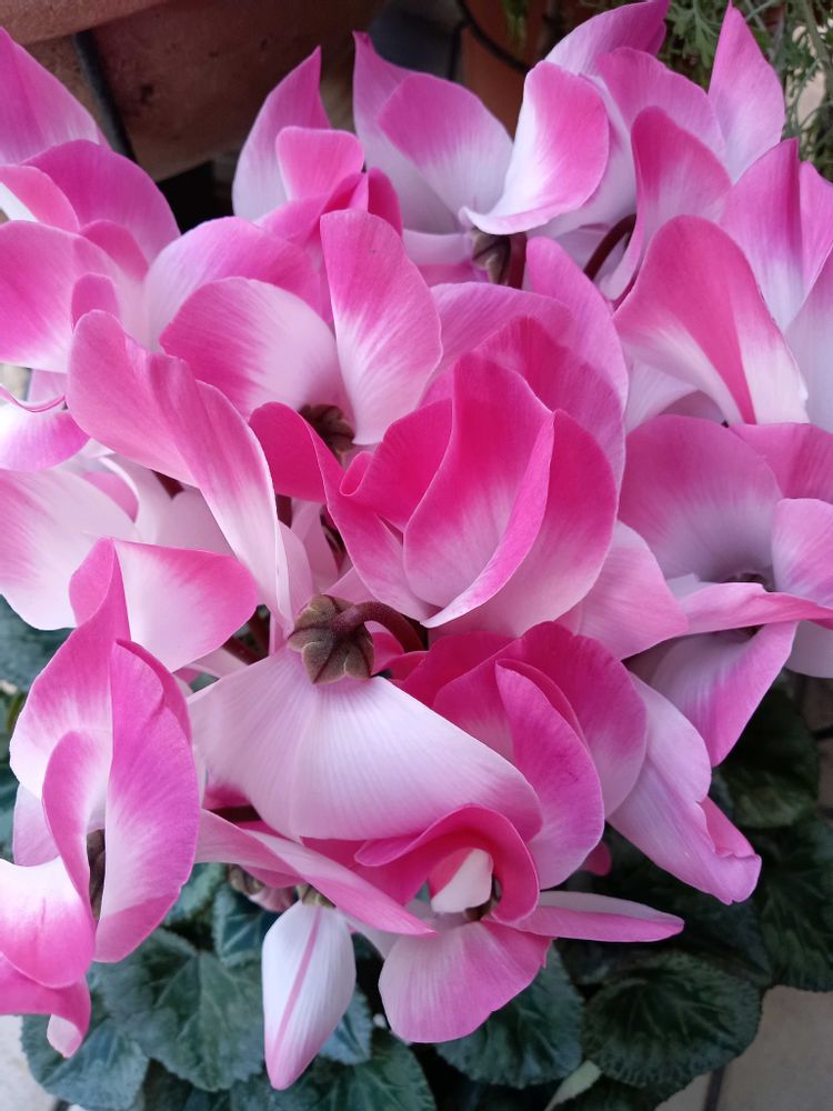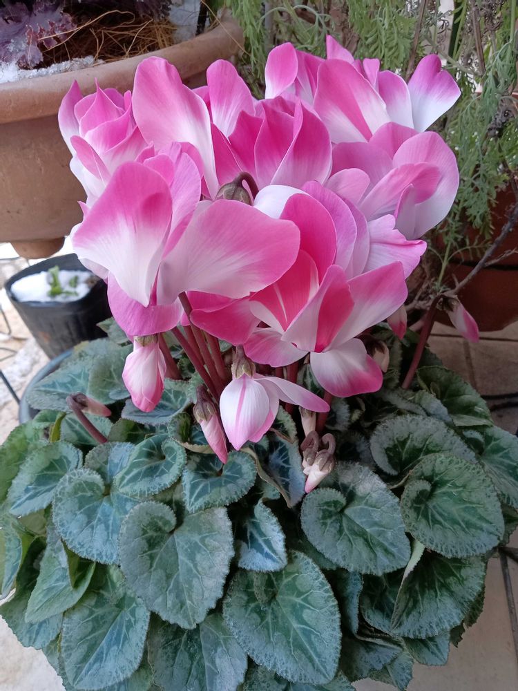 ①②③④ピンクと白のグラデーションが、美しいシクラメン…寒いけど外で📷️撮りました、自然光の下の方が綺麗に撮れました✨🩷💕💗💫