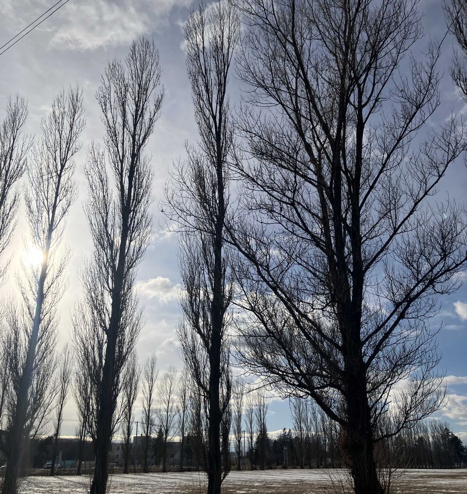 を眺めて凍てつく寒さを堪えているポプラの裸木にPowerを貰えます❣️😁👌♫