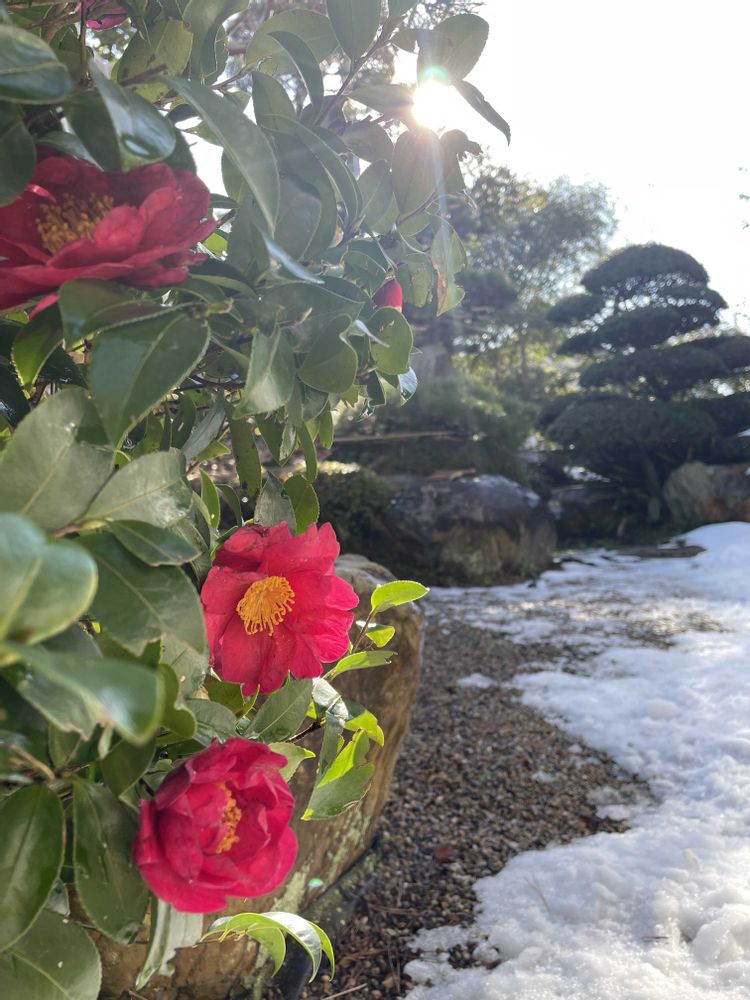 積もっているのは、昨夜降った霙で雪吊りした雪です❄️