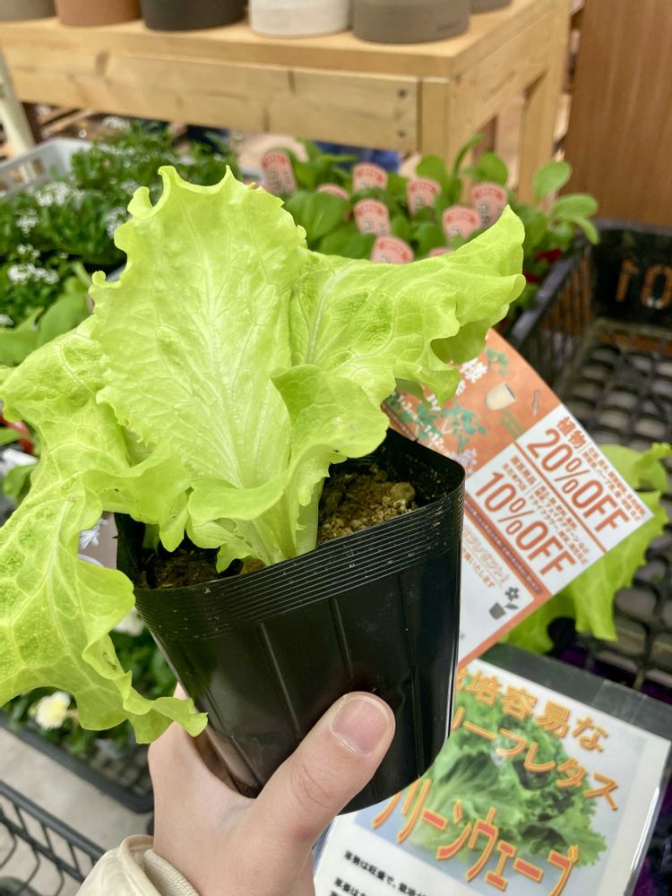 景品に綺麗なお花が並ぶ中私はレタス一択😂