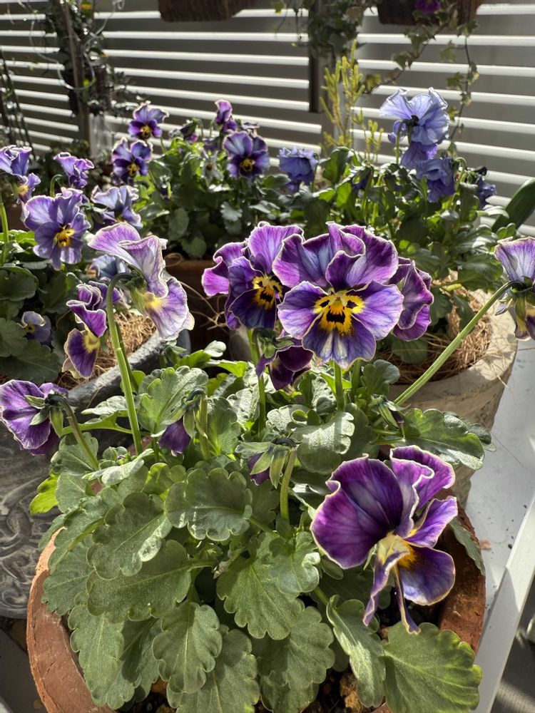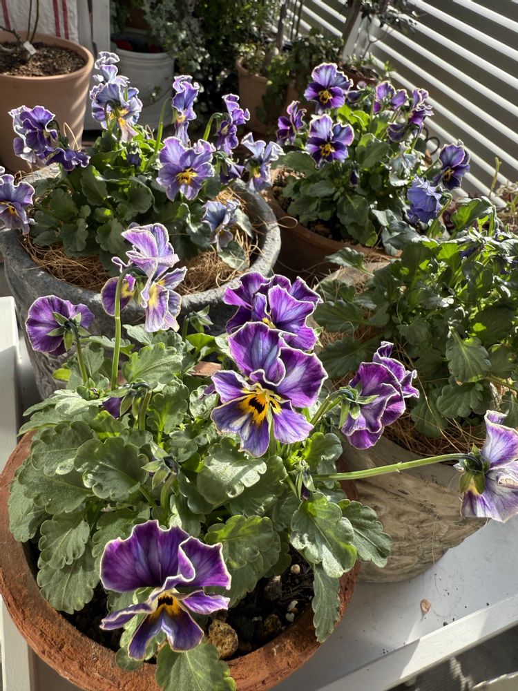 サトウ園芸さんのラピスラズリとアクアレール🪴たくさん花が上がり始めました✨鉢の底ににバラの肥料を忍ばせてみたこの4鉢が特に元気です👀咲き始めからだんだんと色が変わるのがまた美しい✨