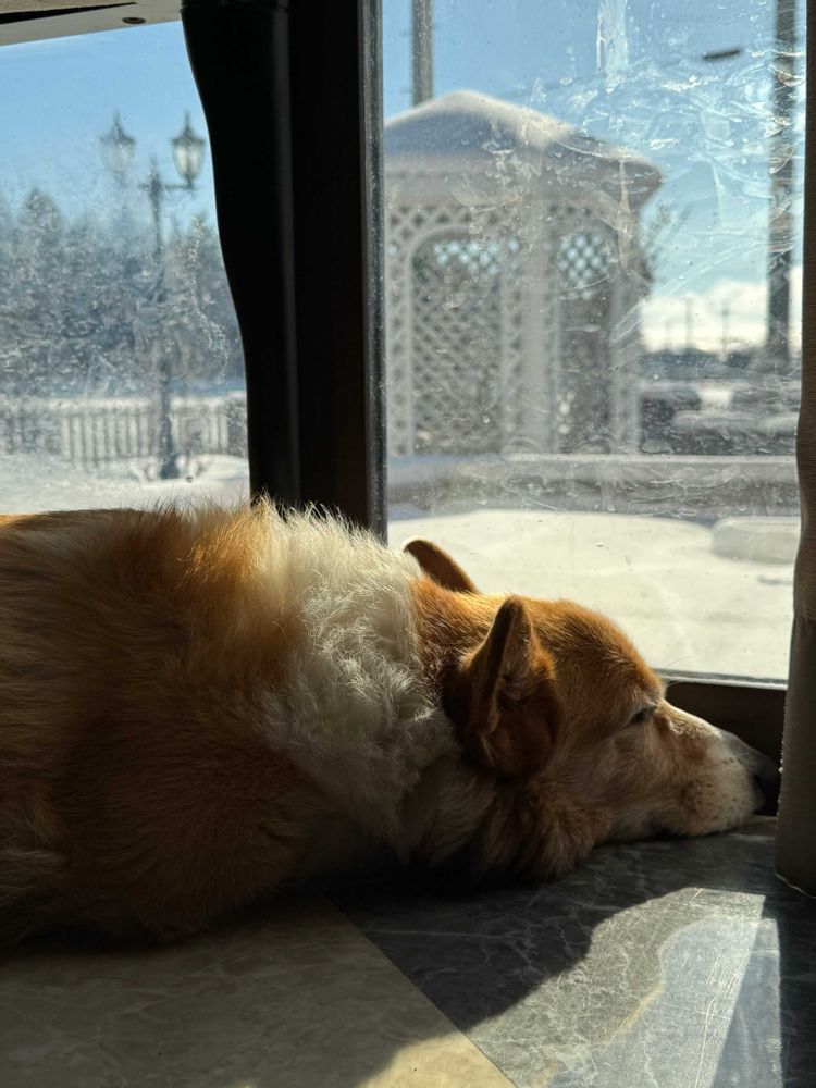 暖かいお部屋の中でくつろいでる茶々ちゃん、お散歩でお疲れかな🤭