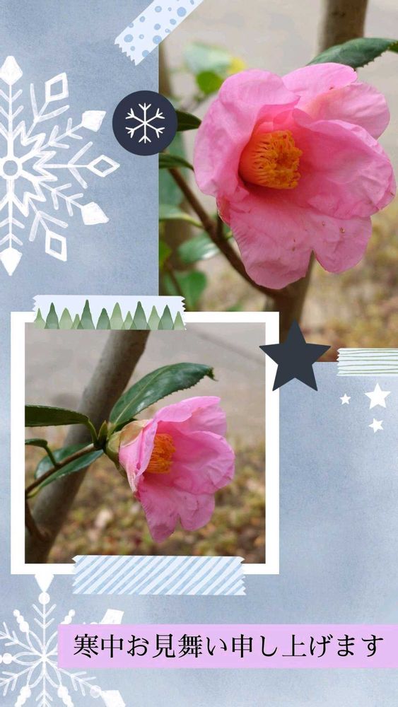 花壇の花,椿(侘助),寒中お見舞い申し上げますの投稿画像
