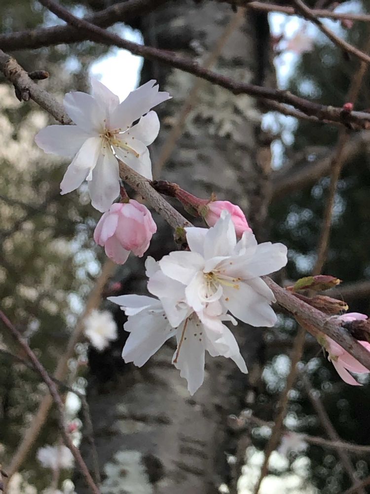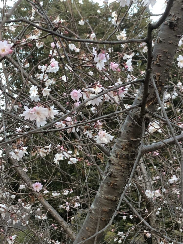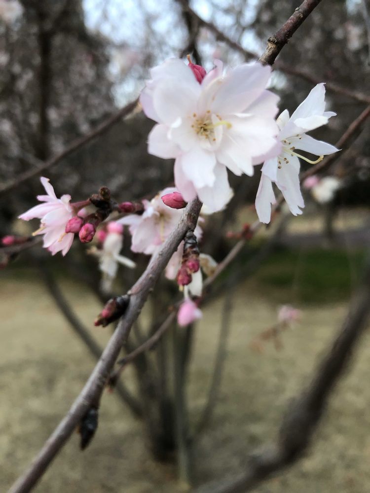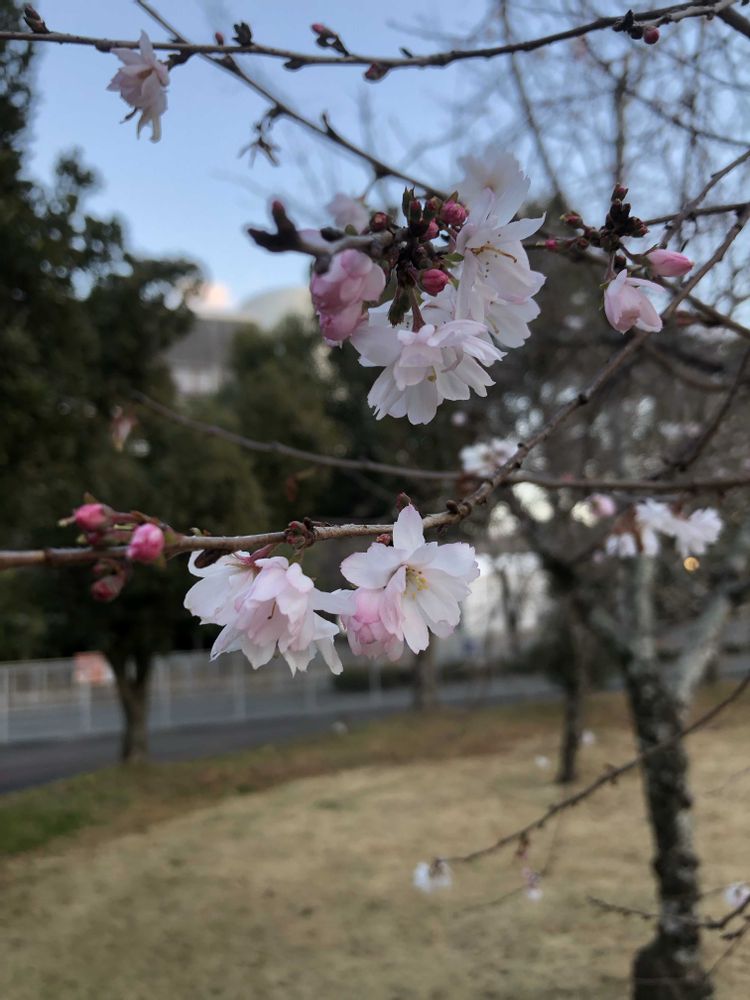 夕暮れ時、万博公園にて「ジュウガツザクラ」をパチリ!📸🌸🤗🌇