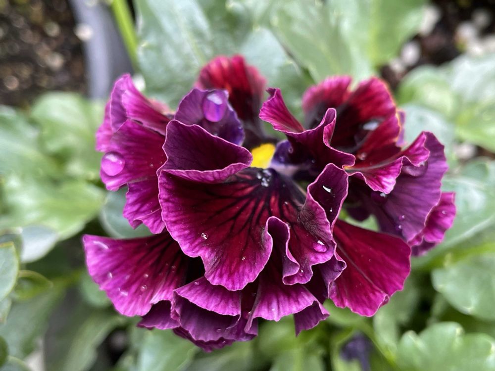 パンジーさんはビオラさんらに比べてお花が大きいだけに、フリフリと相まって豪華だね💜😊
