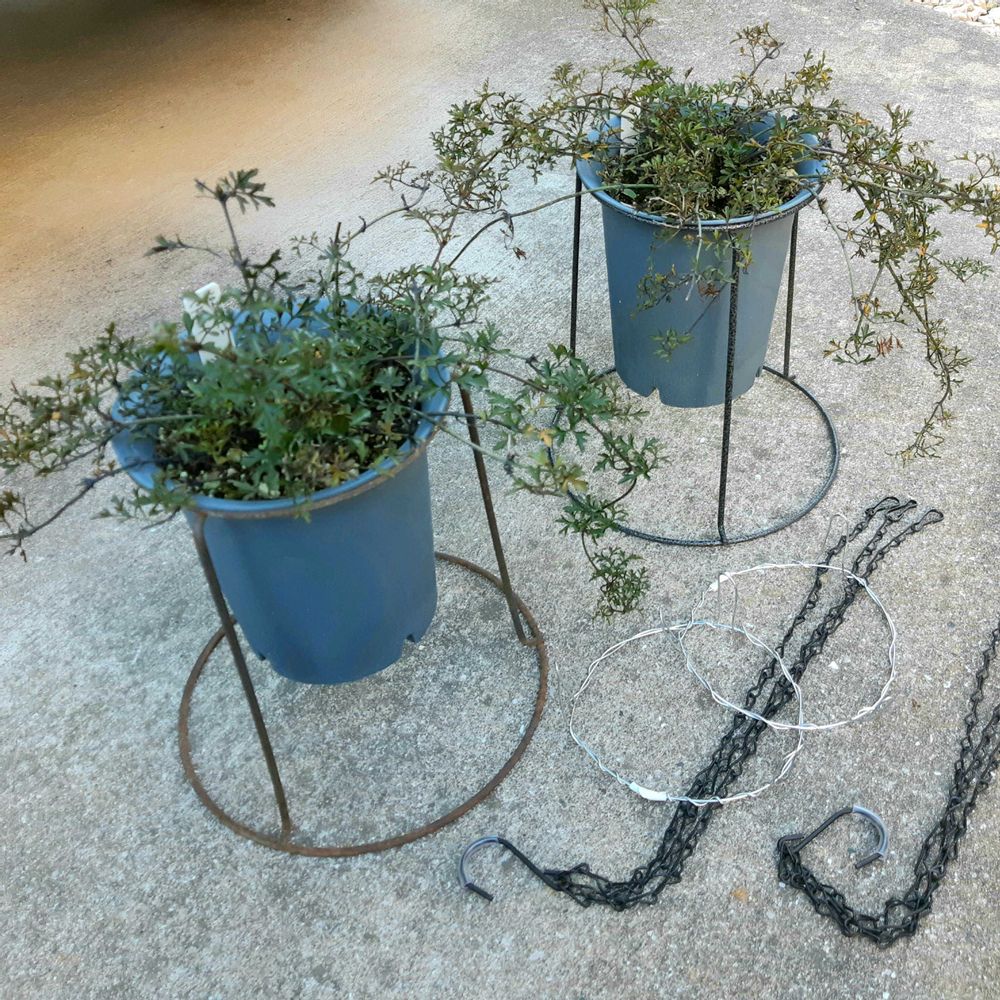 常緑早咲きのクレマチス🌿#ペトリエイ はコンパクトに育てています。(^_^;)DAISOの鉢