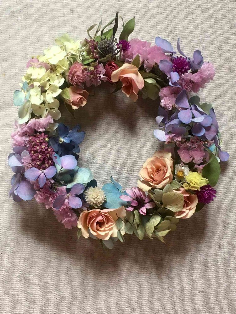 パッと、目が醒める 🌈 カラフルなリースですね😊💕