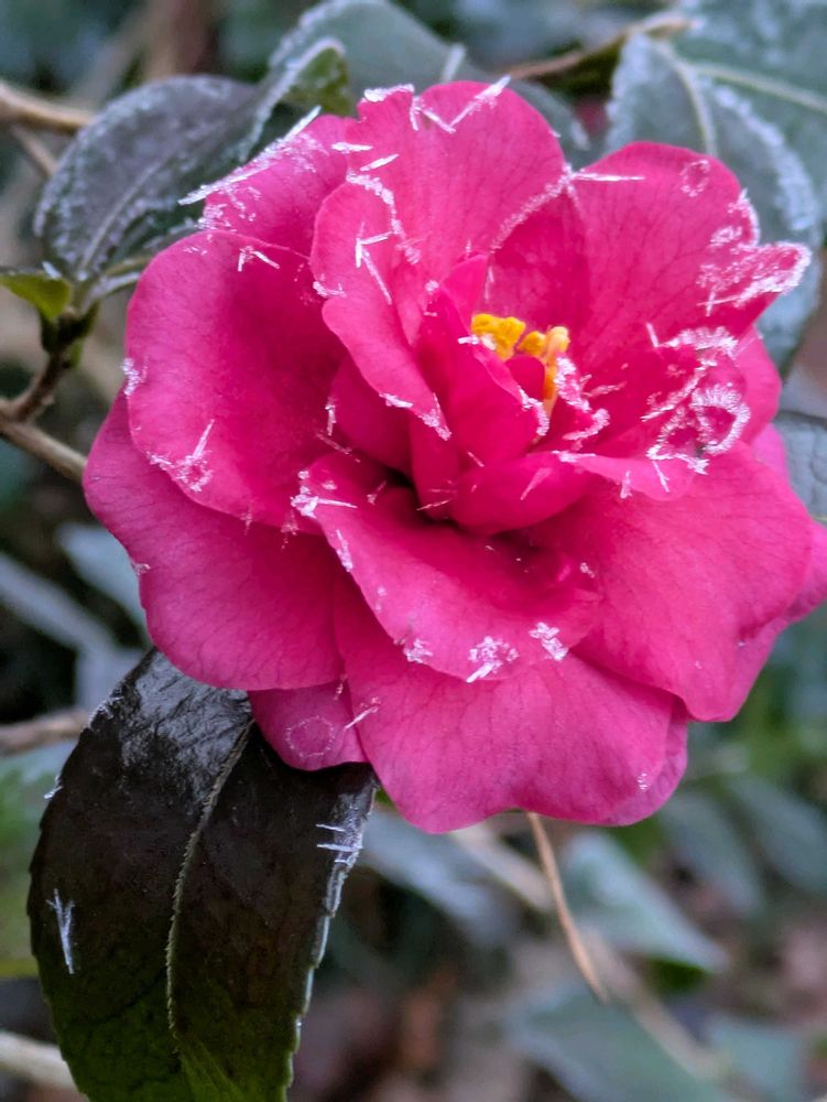 サザンカさんイチゴさん 霜の花綺麗ですね🤩