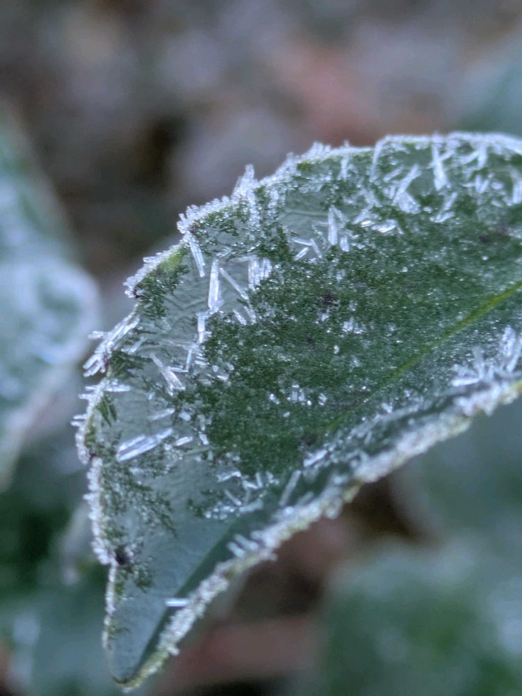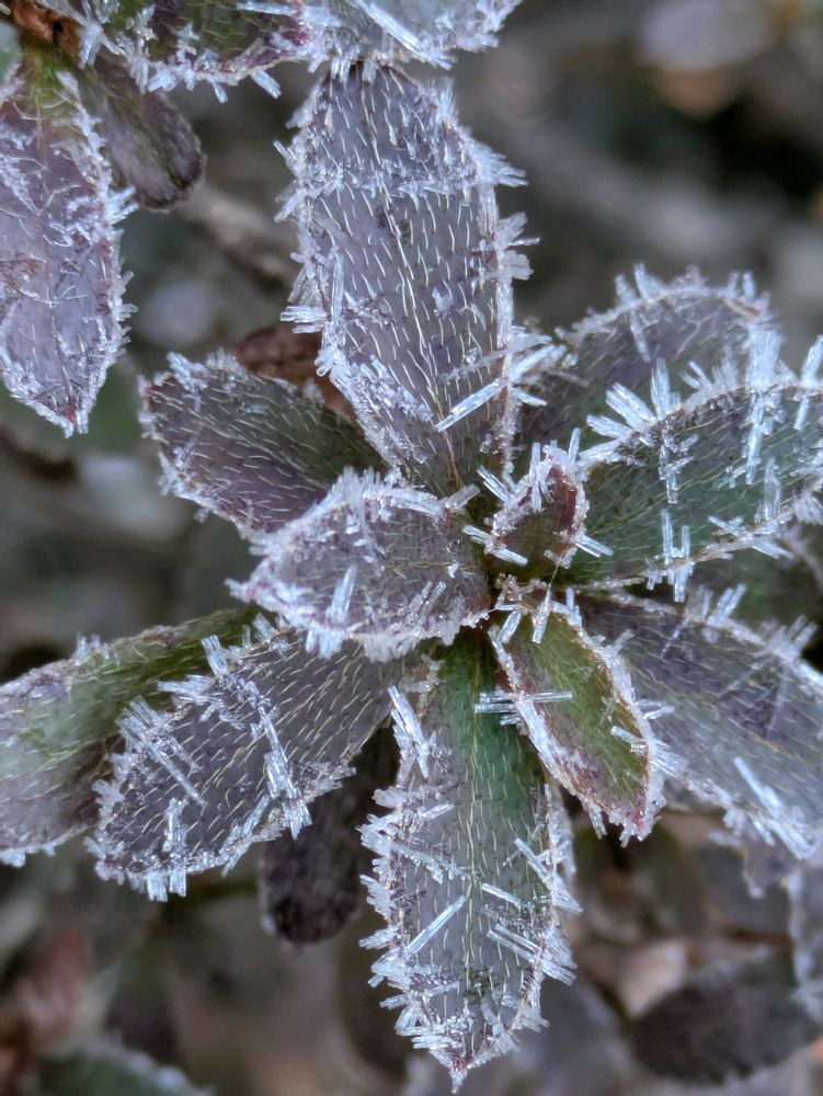 細胞外凍結で、サザンカもイチゴもサツキも霜の花‥᥀֭֜❄۫˖ 朝起きたら庭一面が雪に覆われていたり‥