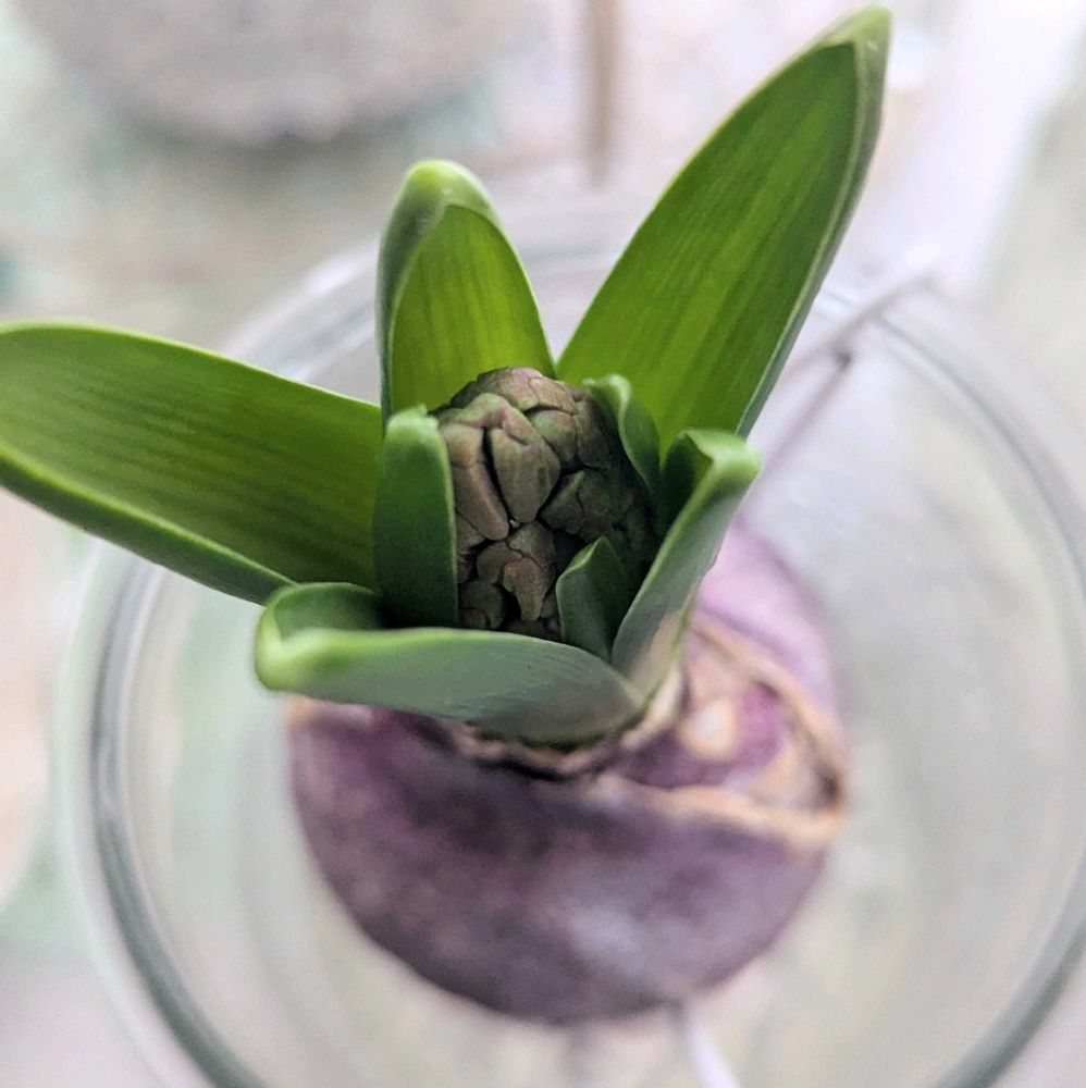 水栽培のヒヤシンス、花芽が上がって来ました🪻🌿🌱