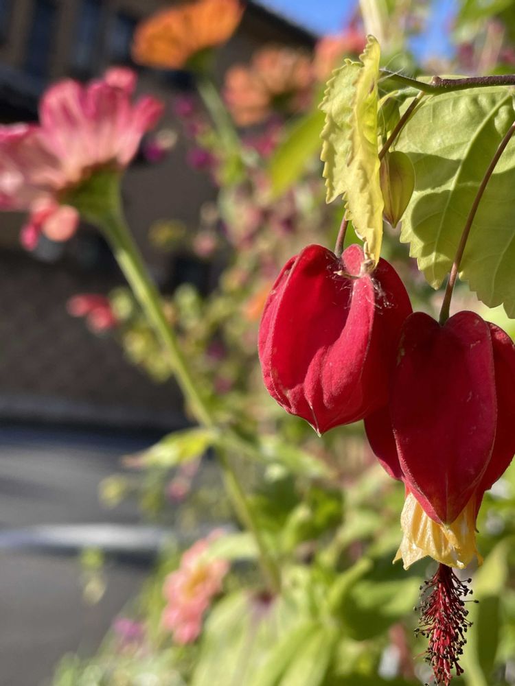 アブチロン(チロリアンランプ) ・別名「浮釣木(うきつりぼく)」 花が傘状のタイプもある。