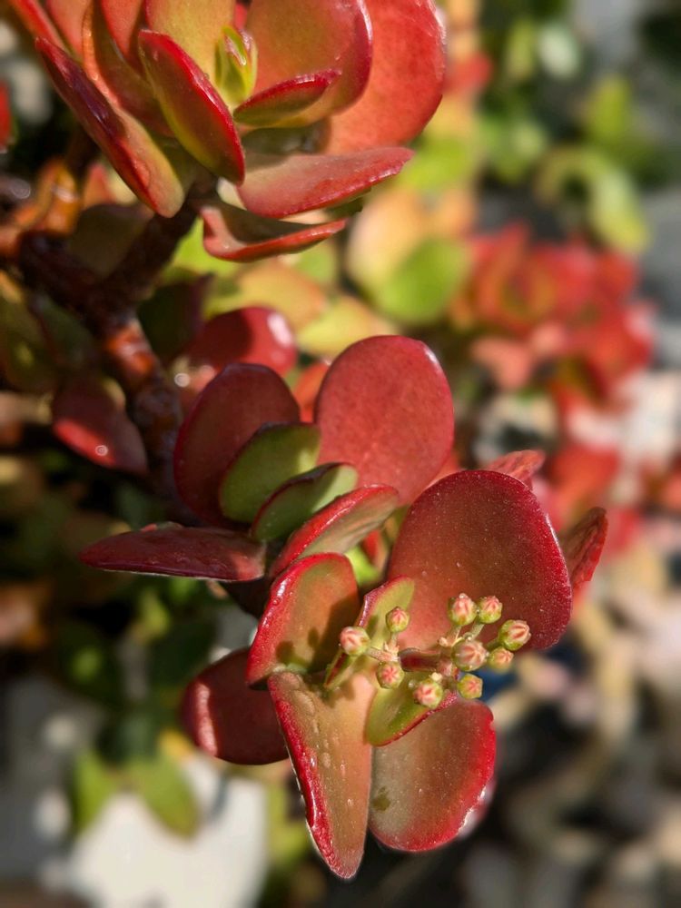 二階テラスのサボテン棚では金のなる木に蕾が👏😄