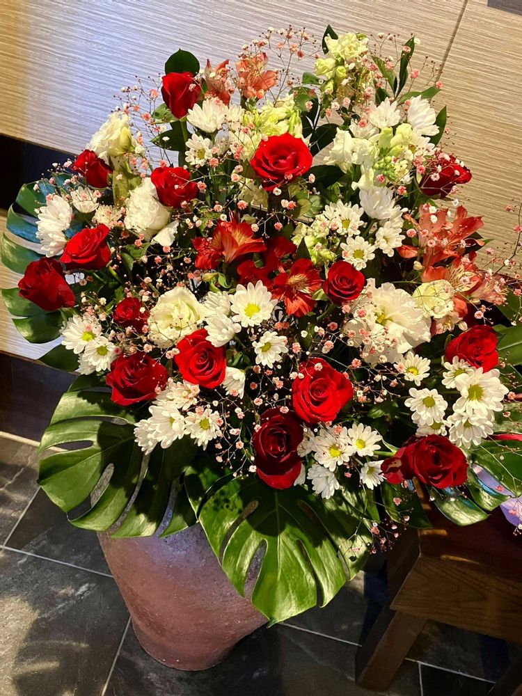 紅白のおめでたい色味のお花…「パパのお祝いみたい」とはしゃぎました🤣