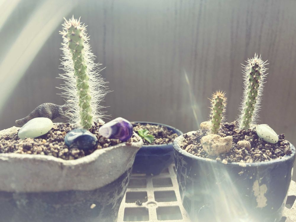 昨年の父の日に娘からもらったサボテンの種から蒔いた、実生サボテン🌵が3本生き残っております。