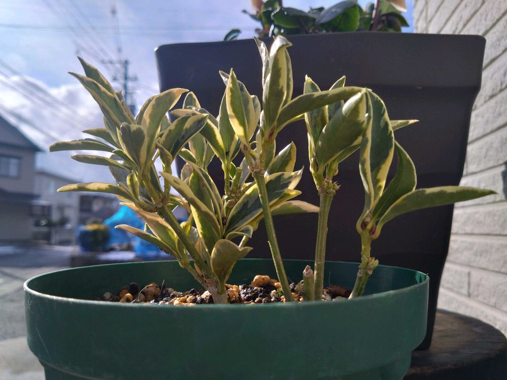 年末から無暖房部屋🏠️にいたのですが、土の様子があやしく…💦根をいためないように慎重に植え替えしました(5号スリットにサイズダウン)。
