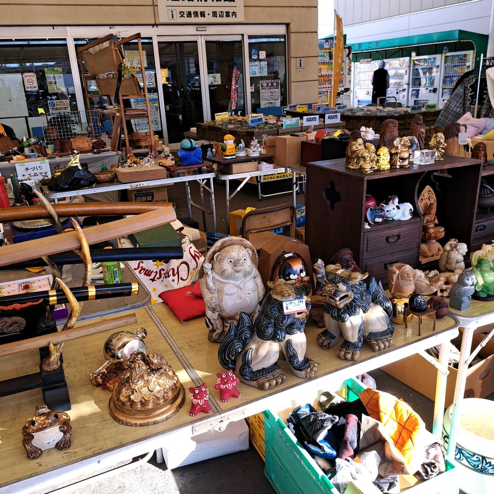 仕事帰り「道の駅 五霞」によってきました 直前R4上で前の車に急ブレーキを踏まれ危うく追突しそうになりました ギリギリセーフで心臓とまるかと思った… 気持ちを切り替えにここへ 自分は茨城名物サツマイモの味つけのアイスクリームを でもいまいちサツマイモの味はしなかったなぁ 同乗者の若い兄ちゃんは写真(5枚目左)に写っている模造刀を3000円にて購入? 売り主に6000円からのディスカウントを持ちかけられたそうな⤵️ でも何に使うのやら? メダカも売ってたけど人気あるんでしょうかね?