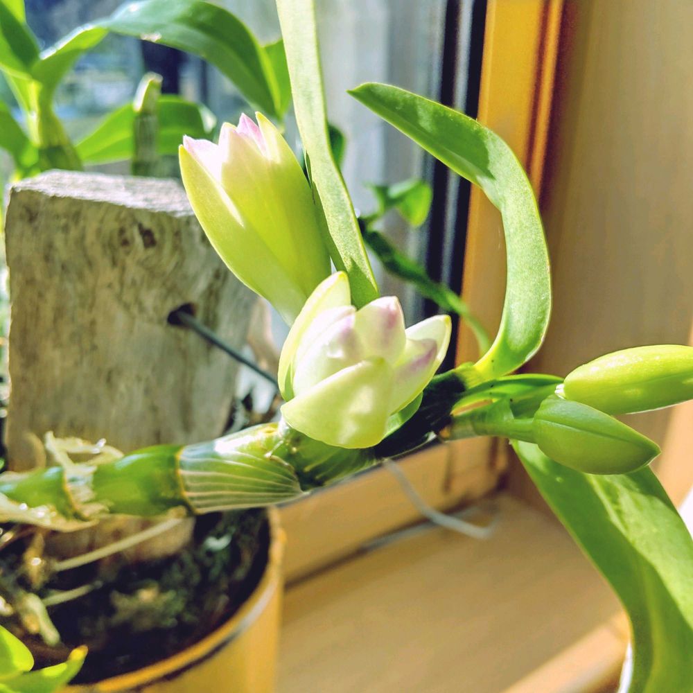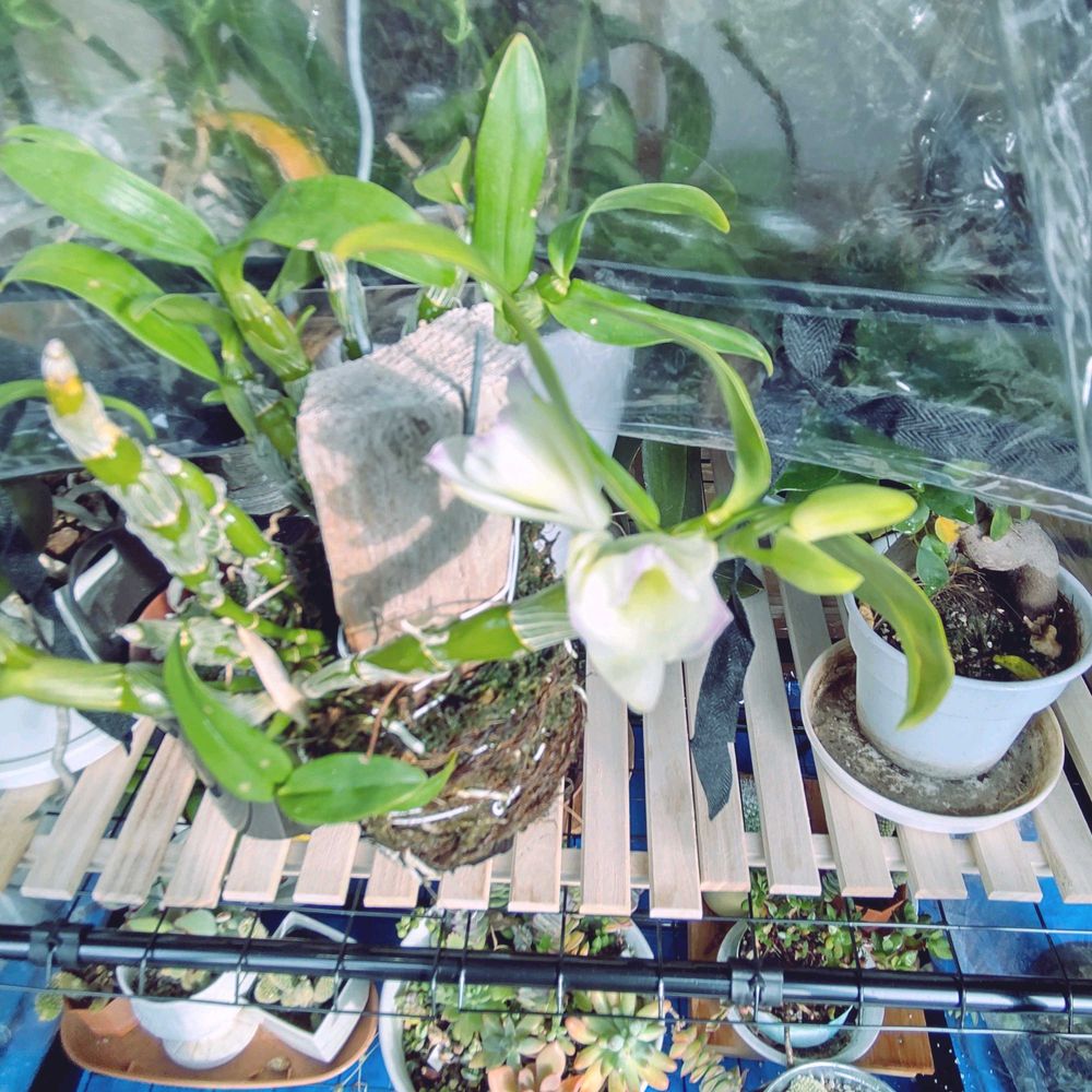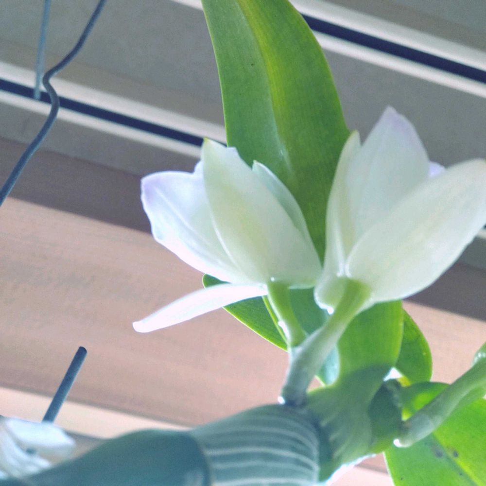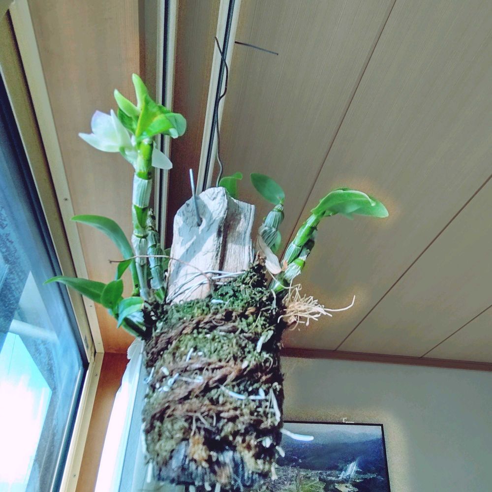 デンドロビュームが3年目にして花を咲かせてくれた。👏😄ずっと吊るしていても咲かなかったので、今年は鉢に入れて水分を十分とらせ、外で育てました。花目をつけてくれた時は、とても嬉しかった。ありがとう。あと2輪咲いてね。🤗