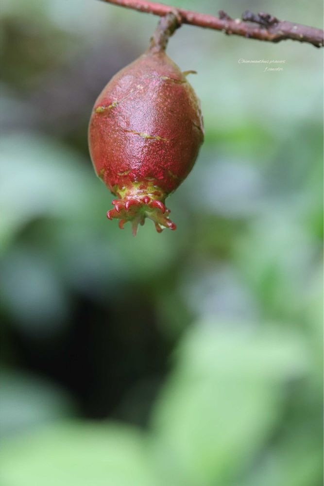 果実(偽果):長さ 3-5cm ※ 不均整な楕円形で、先端に萎れた雄しべが残り、遠目からはミノムシが枝先にぶら下がっているように見える