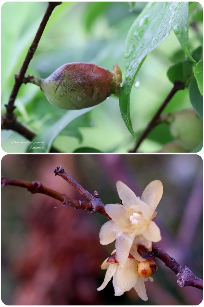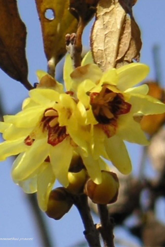 🔺見分け方: ロウバイは花の中心部が暗紫色でその周囲が黄 色、ソシンロウバイは花全体が黄色