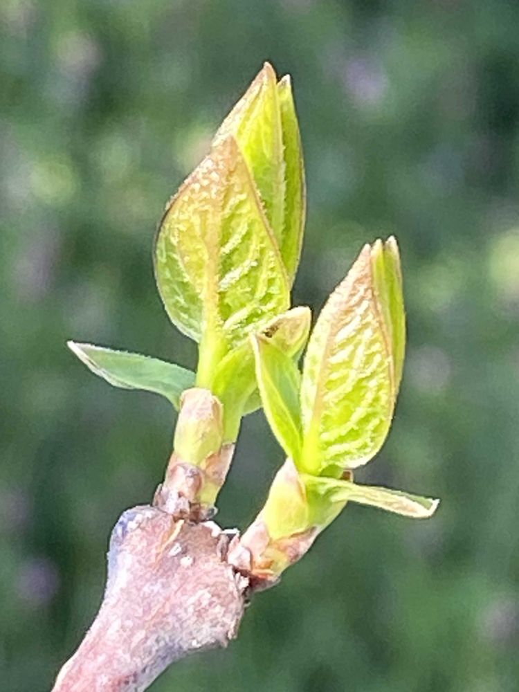 *①の写真上↑に見えていた仮頂芽(葉芽)が展開し、バンザイポーズをしています。私はこのバンザイポーズがかわいくて大好きなんです💕
