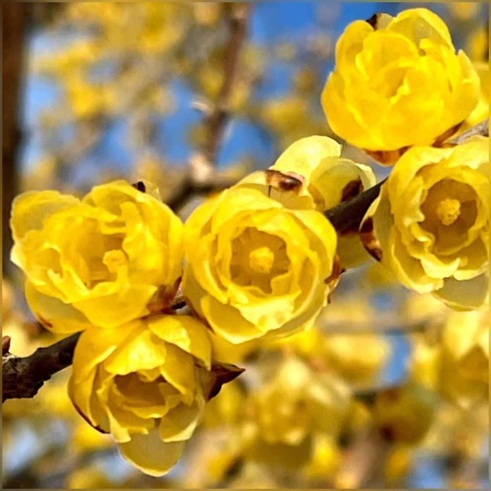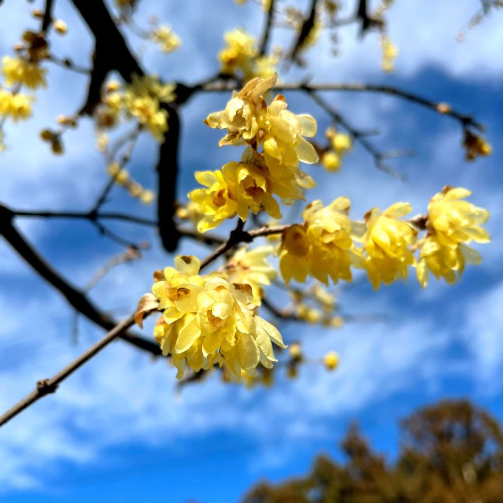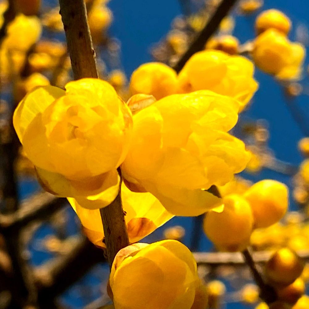 ロウバイ(蝋梅)は、まだ春が遠い1~2月の厳寒期に、ウメ(梅)に先駆けていち早く咲きだす。