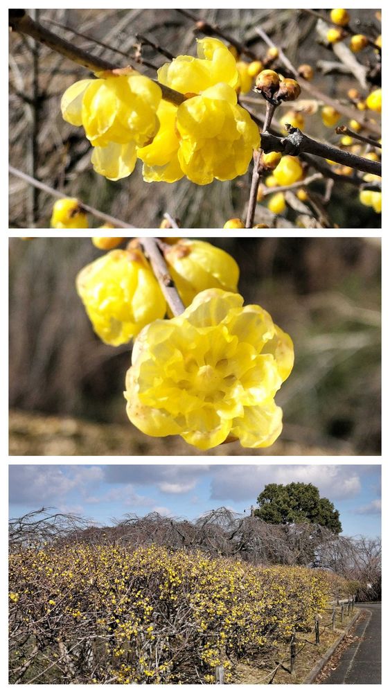 両側に蝋梅が咲き乱れて、開花したら香りもいっぱいですね🎵😍🎵
