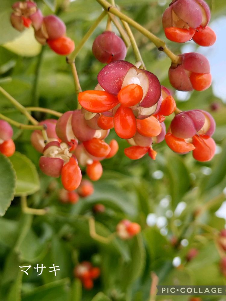 ③防風林のマサキの実が弾けてました、可愛らしいこと❣️