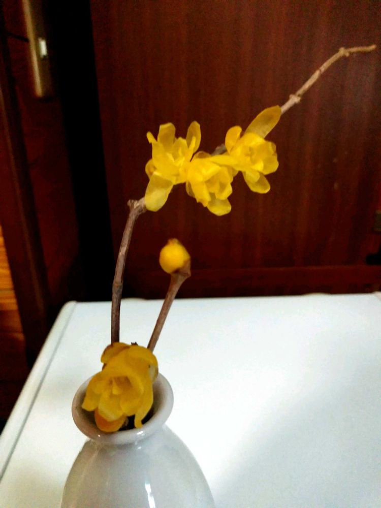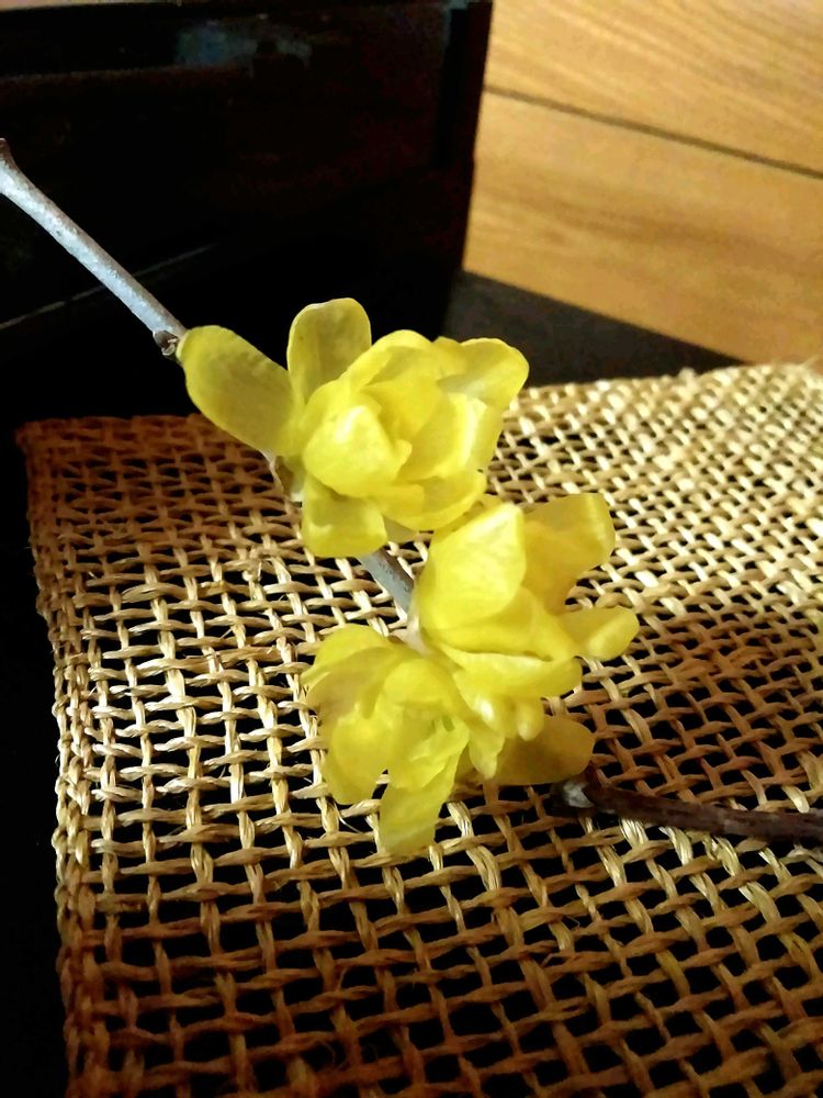 庭のロウバイの枝を花瓶に飾る🌼*・