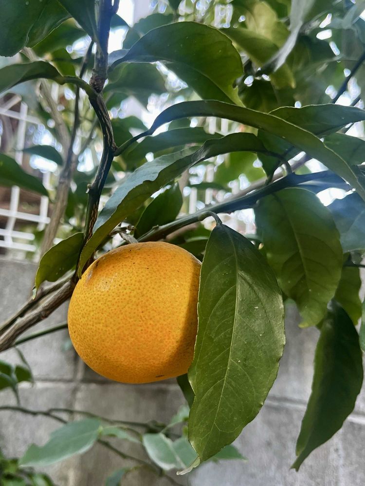 2020年に小さな苗木を植えて、2023年に初めて付いた実は全滅、今季やっと初収穫できたオレンジ。