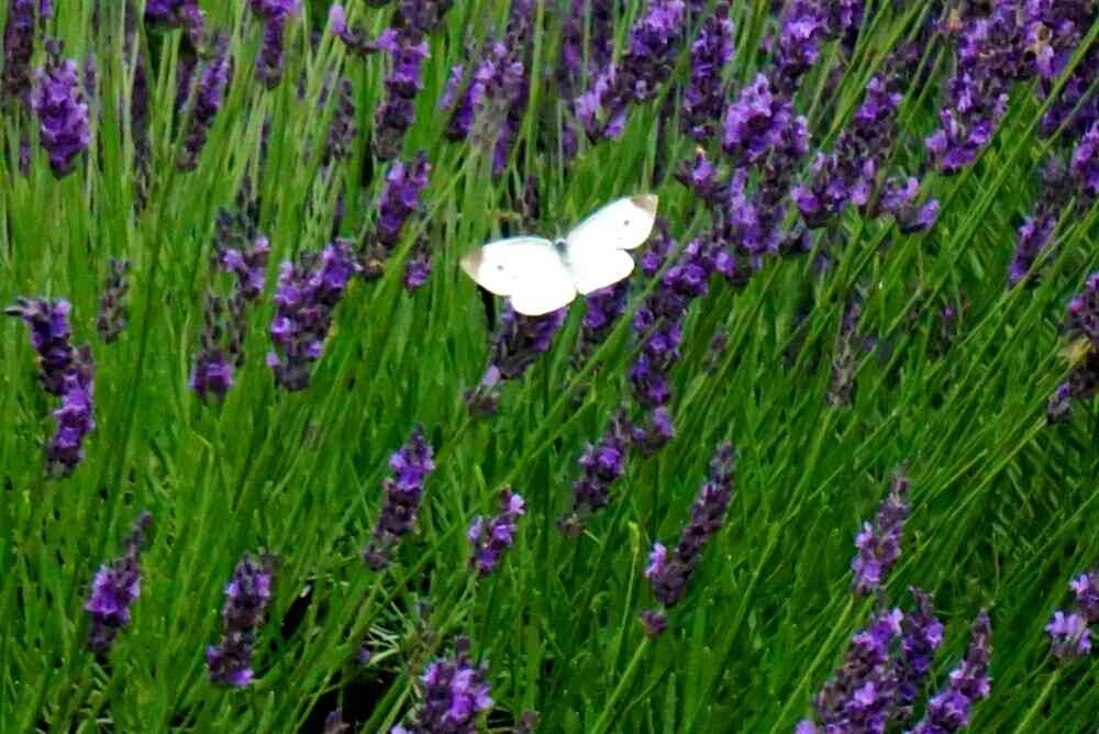ラベンダーの濃い紫と白いちょうが美しい一枚ですね〜😍🌹💕🎶